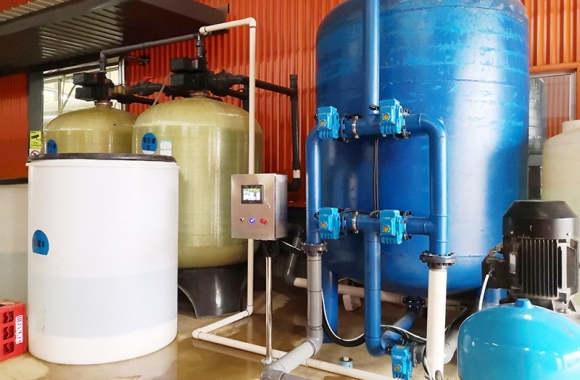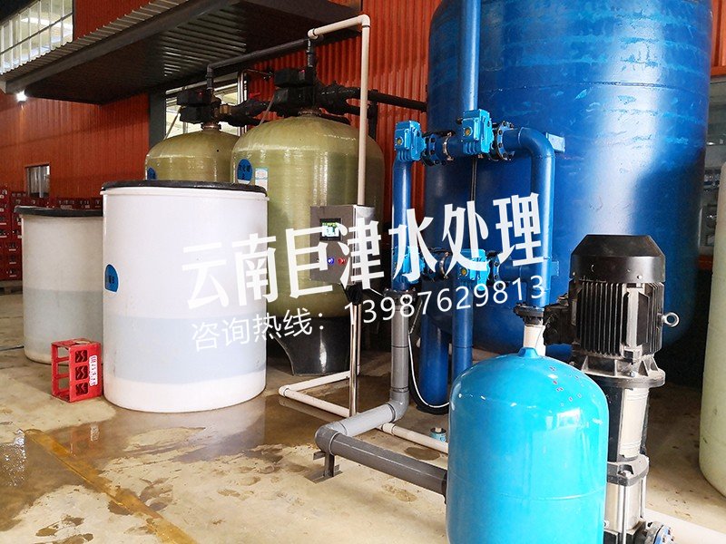 項目名稱:云南某食品廠軟化水設備 設備名稱:40噸軟化水設備 工藝流程:井水-原水箱-錳砂過濾器-石英砂過濾器-活性炭過濾器-軟化水-凈水箱...