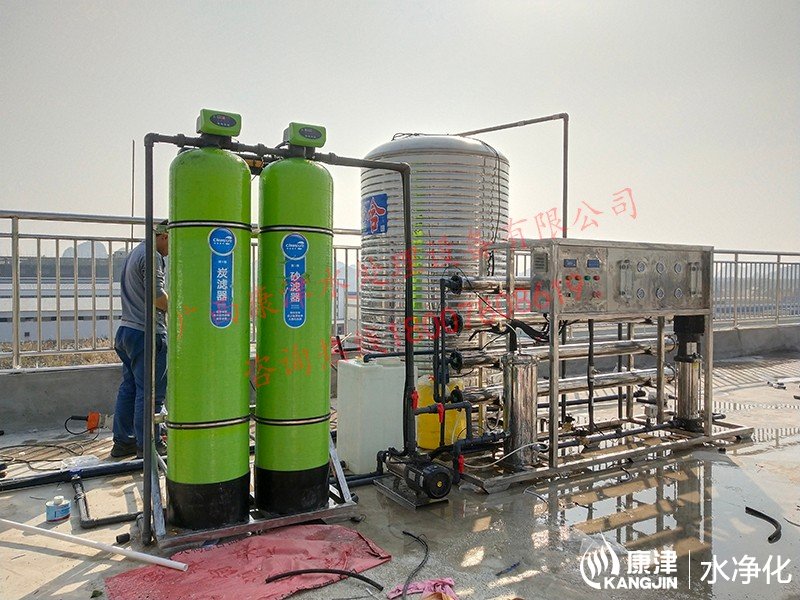 工藝流程:原水箱-原水泵-石英砂過濾器-活性炭過濾器-精密過濾器-反滲透設備-凈水箱